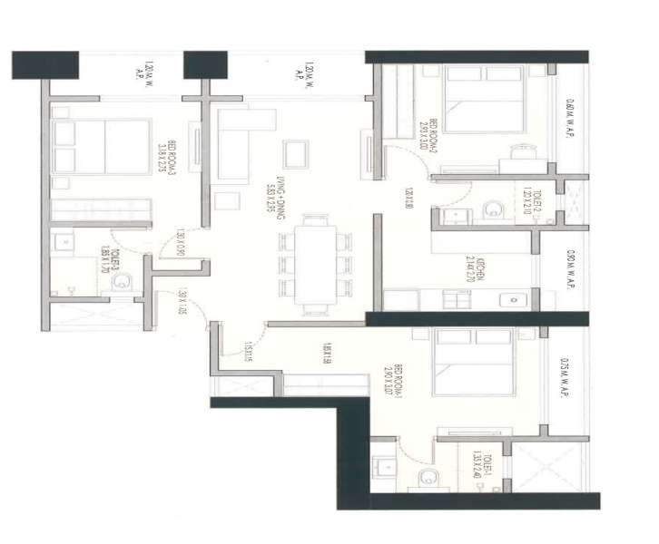 The apartment is east-facing, ensuring ample natural light and ventilation throughout the day. Vastu compliance adds an element of positive energy and harmony to the living space. The building is constructed by a reputed builder, ensuring high-quality construction and attention to detail.