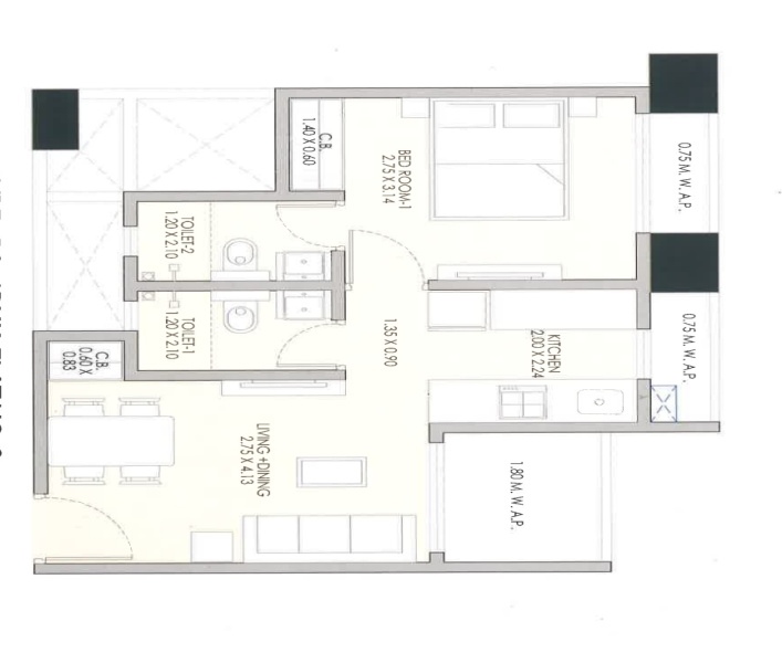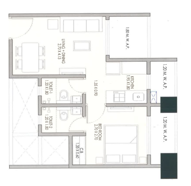 The apartment boasts a built-up area of 488 sq.ft., making it an ideal living space for individuals or small families. The unit features 1 spacious bedroom, 2 bathrooms, and an additional room that can be utilized as a study or storage area. The property is being sold as an unfurnished space, allowing buyers the freedom to customize and design the interiors according to their preferences.