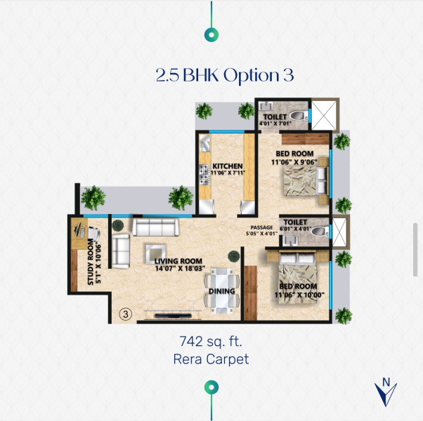Spanning a carpet area of 744 sq.ft., this apartment boasts three bathrooms, ensuring convenience and comfort for the residents. The property is unfurnished, allowing the new owners to customize and design the space according to their preferences.