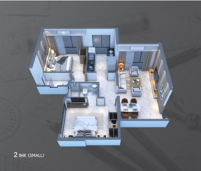 Spread across a carpet area of 603 sq.ft., this 17th floor apartment offers breathtaking views of the city skyline from its western-facing windows. The building stands tall at 22 floors, ensuring exclusivity and privacy for its residents.