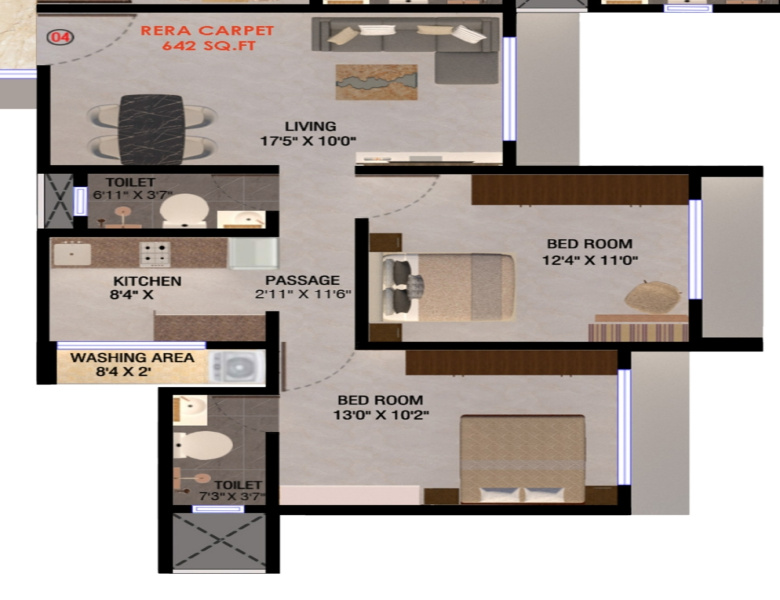 Spread across a built-up area of 770 sq.ft., this spacious flat features 2 bedrooms and 2 bathrooms, making it ideal for small families or young professionals. The property is unfurnished, allowing you the freedom to customize and decorate it according to your preferences.