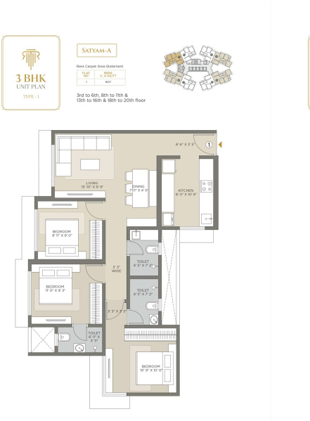 Located in the coveted area of Ramdev Park in Mira Road East, Mumbai, this spacious 3 BHK flat offers a luxurious and comfortable living experience. Situated on the 18th floor of a 37-story building, this new property boasts a built-up area of 968 sq.ft., perfect for a growing family or those looking for extra space.\r\n\r\nThe property is east facing, allowing natural light to flood the interiors and providing a serene view of the surroundings. The flat is unfurnished, giving the new owner the flexibility to design and decorate according to their personal style and preferences.\r\n\r\nThe amenities in the building include power backup, a lift for convenience, reserved parking to ensure safety of your vehicle, round-the-clock security, and maintenance staff to address any concerns promptly. The property is in a gated society, offering added security and privacy for residents.\r\n\r\nThis flat is designed by a reputed builder, ensuring high-quality construction and attention to detail. The layout is vastu compliant, promoting harmony and positive energy flow throughout the space. With ample parking space available, you won\'t have to worry about finding a spot for your vehicle.\r\n\r\nIn addition to the 3 bedrooms, this flat also features an additional room that can be used as a home office, study, or extra storage space. The freehold property gives you full ownership and control over your investment.\r\n\r\nOverall, this property in Ramdev Park, Mira Road East, Mumbai, offers a spacious and comfortable living space with all the necessary amenities for a modern lifestyle. Don\'t miss out on the opportunity to make this your dream home.